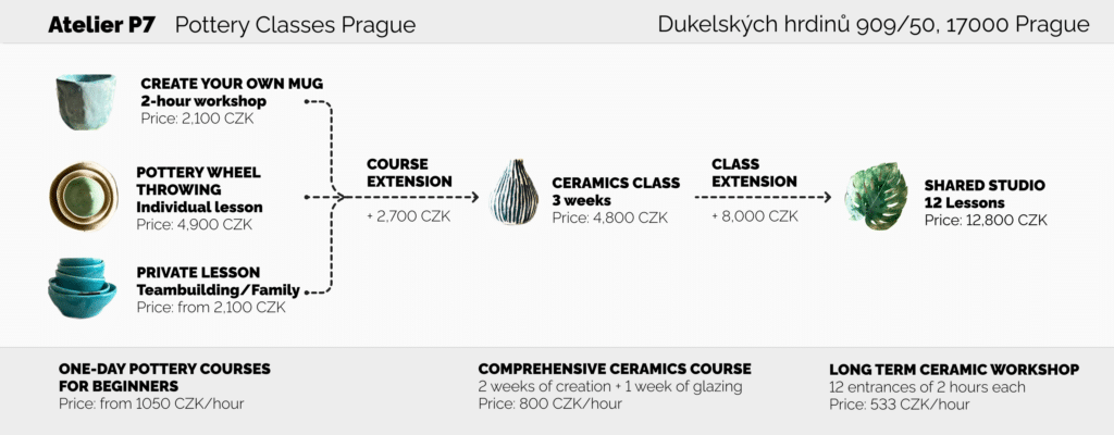 EXCELLENT Based on 68 reviews nigina malovikova2025-09-05Trustindex verifies that the original source of the review is Google. Keramický ateliér má velmi příjemnou atmosférou, lektorka je milá, trpělivá a ochotná poradit i dětem a začátečníkům. Komunikace je pohotová, absolvovali jsme opakovaně individuální kurz práce na kruhu, lektorka nám vždy vyšla vstříc s termínem. Plánujeme nadále realizovat v tomto atelieru lekce na hrnčířském kruhu i se účastnit pravidelných lekcí pro veřejnost. Adam Zeman2025-09-04Trustindex verifies that the original source of the review is Google. Všetko ohľadne kurzu bolo super. Výborná organizácia aj pri viacerých ľuďoch, príjemná pani, ktora nás viedla celým kurzom a krásne priestory k tomu. Určite odporúčam. Lidiia Nikolaeva2025-08-08Trustindex verifies that the original source of the review is Google. В нашем путешествии по Праге решили организовать себе немного уроков керамики. Мы заказали частный урок керамики. Было весело и познавательно. У них также есть доставка. Мы ее ждём. Ни к чему подробности наши счастливые лица и изделия говорят все за нас. Osman Ünal2025-06-08Trustindex verifies that the original source of the review is Google. Plans changed after booking, and the cancellation process was quick and smooth. Great communication and no issues with the refund. MG GG2025-04-10Trustindex verifies that the original source of the review is Google. Incredible!! Can’t say enough good things about this studio and its owner. They are patient and understanding. Hosted a team building event there and they answered ever question I had and were so polite and considerate to the point they will ship our artwork for the US for me. Highly recommend you visit and create something wonderful and memorable there. Barbora Růžičková2025-04-09Trustindex verifies that the original source of the review is Google. moc příjemné místo, absolvovala jsem tady 3 lekce keramiky a kromě zážitku si odnáším i vlastníma rukama vyrobenou misku a hrnky na espresso, děkuji <3 Tereza Mullerova2025-04-09Trustindex verifies that the original source of the review is Google. Amazing experience! We tried pottery teambuilding. We had a lot of fun and we recommend visiting the Atelier P7. Michaela Timkova2025-04-02Trustindex verifies that the original source of the review is Google. Začala som s 3-týždňovým kurzom na základe vouchera, no už po prvých lekciách som vedela, že chcem pokračovať. Lektorka je nesmierne milá, trpezlivá a ochotná vždy pomôcť, čo vytvára príjemnú a motivujúcu atmosféru. Vďaka jej prístupu som si kurz predĺžila na 12 týždňov a ísť naň je moja najoblúbenejšia časť týždňa. Môžem len odporúčať. Ondrej Zavadil2025-04-02Trustindex verifies that the original source of the review is Google. Nice enjoyable ceramic workshop. I have bought a 3 week course for me and my wife as a set of date nights. It has been very nice and welcoming environment. They speak Czech and English catering for all nationalities. We had funVerified by TrustindexTrustindex verified badge is the Universal Symbol of Trust. Only the greatest companies can get the verified badge who has a review score above 4.5, based on customer reviews over the past 12 months. Read more